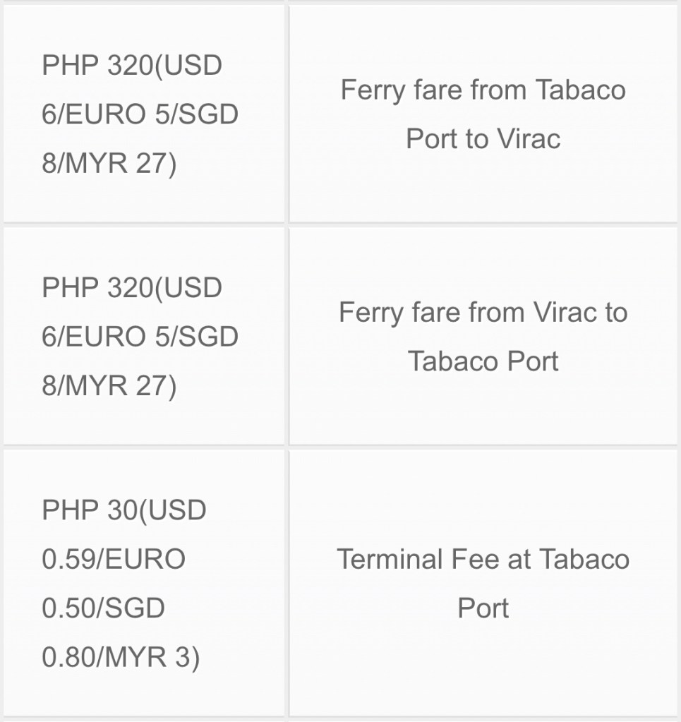 There’s also a fastcraft ferry from Tabaco to Catanduanes. Transit time is roughly 2 hours.